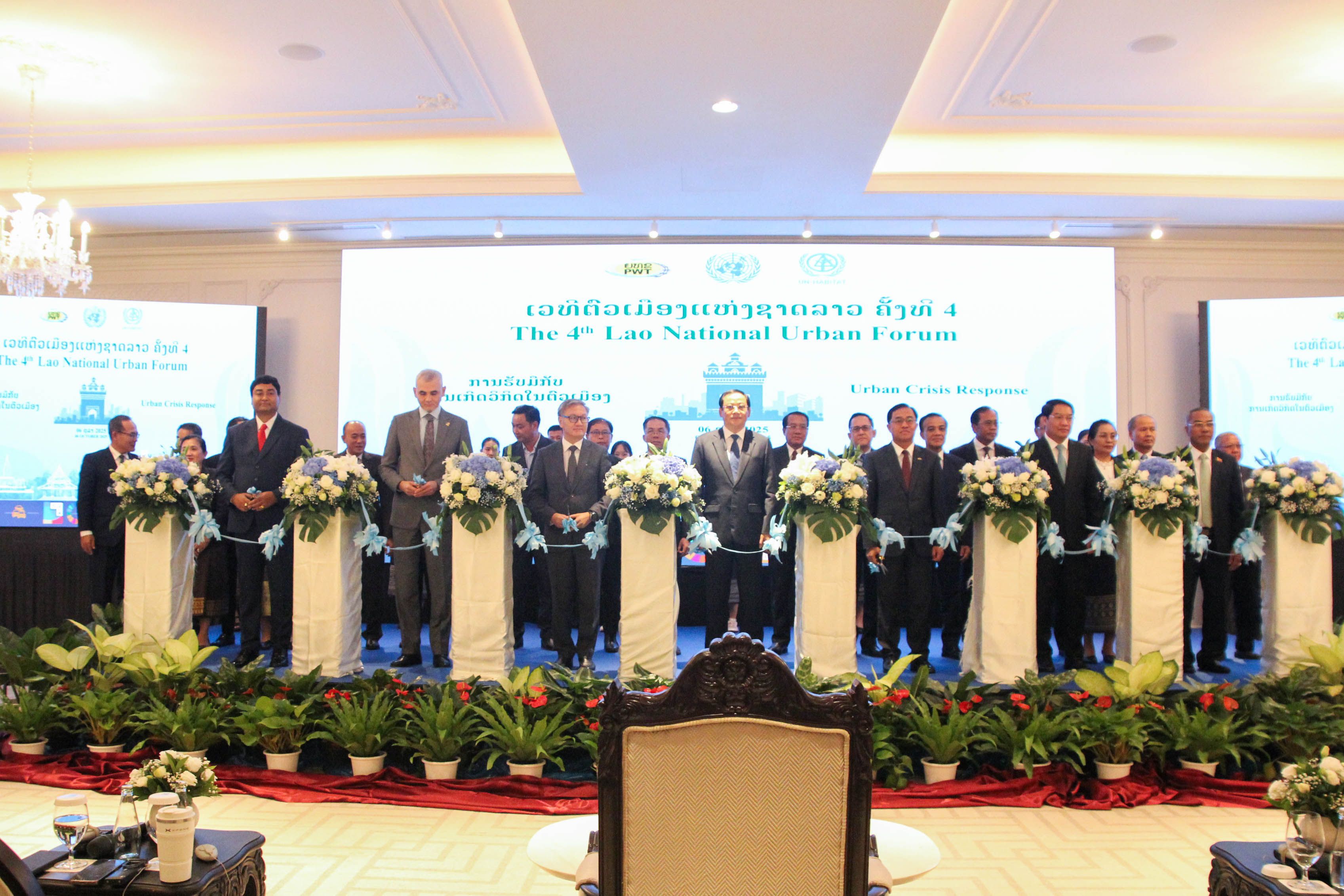 ໃນວັນທີ 6 ຕຸລາ 2025 ທີ່ ໂຮງແຮມສຸພັດຕາ ນະຄອນຫຼວງວຽງຈັນ, ໄດ້ມີກອງປະຊຸມ ເວທີຕົວເມືອງແຫ່ງຊາດ ຄັ້ງທີ 4 (the 4th Lao National Urban Forum) ພາຍໃຕ້ຄໍາຂວັນ: “ການຕອບໂຕ້ວິກິດໃນຕົວເມືອງ (Urban Crisis Response)”.